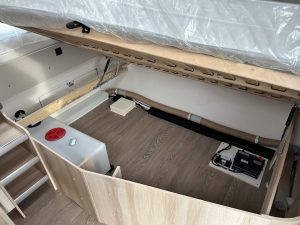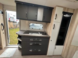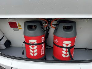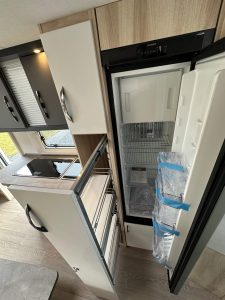 - Lodówka zasilana z sieci 230V, 12V, gas, o pojemności min. 155 litrów.