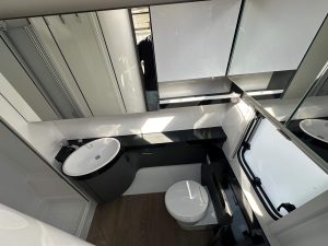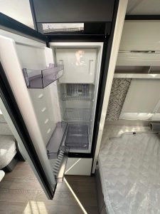 • Lodówka zasilana z sieci 230V, 12V, gas, o pojemności min. 155 litrów.