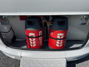 Mają Państwo do dyspozycji system butli GasBank z wyświetlaczem stanu wypełnienia zbiorników, opłata pobierana jest za korzystanie z 1 butli gazowej, w przypadku większego poboru gazu i zużycia gazu z 2 butli, będzie pobrana dodatkowa kwota w wysokości 100 zł po zakończeniu Wynajmu przyczepy.
