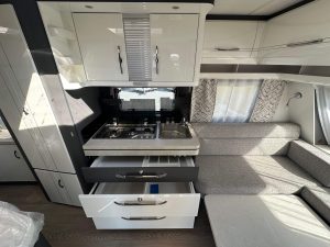 • Kuchenka 3-palnikowa z pokrywą szklaną i zapalarką.