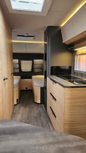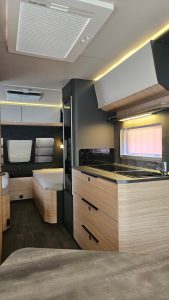 - Lodówka zasilana z sieci 230V, 12V, gas, o pojemności min. 155 litrów.